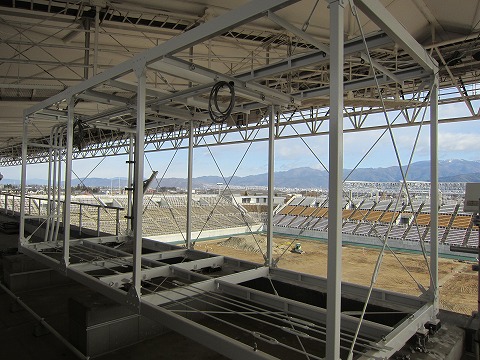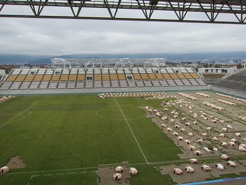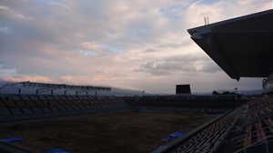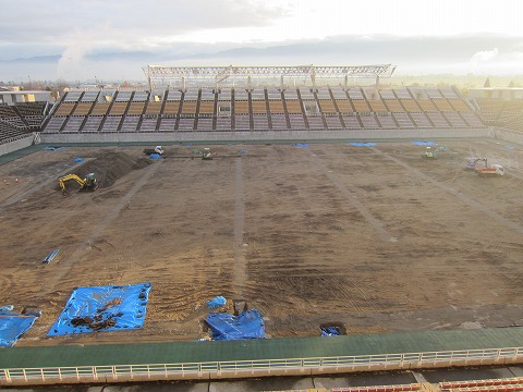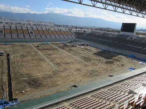 現在は音響設備と芝生の張替工事の2本立てです。