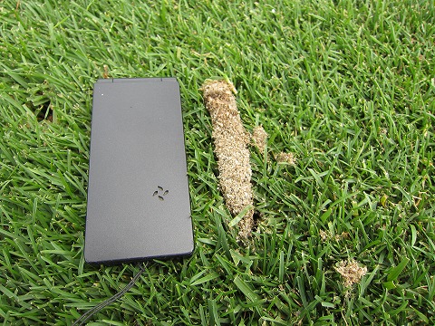 円柱状の芝生を引き抜いていく作業です。