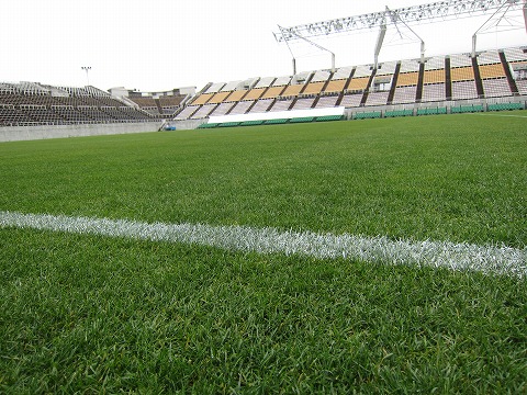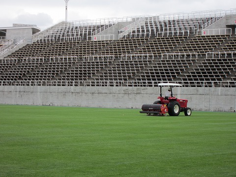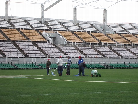午後は天気も回復したので急いで芝刈り、ライン引きを行っています。