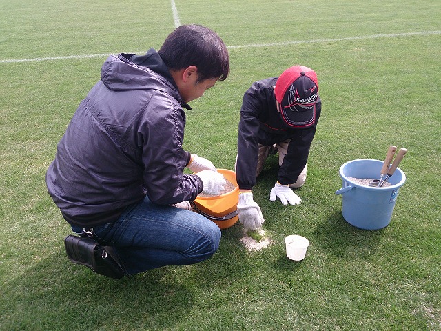 もちろんお持ちいただいた芝生はすべてアルウィンのピッチに定植しました。