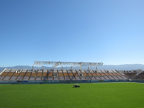 今日はとても良い天気になりました。 台風が暑さも一緒に持って行ってくださったの??と思うくらい 芝生達にとってよい気候になりました♪ 例年以上の酷暑で弱くなった根っこ。 秋に向けて少しでも回復して 引き続き皆様に良いピッチをご覧いただけるように スタッフ一同頑張りたいと思っています。 今週末は 松本山雅FC vs ガンバ大阪 戦があります。 熱戦を期待しています(^_^)/~ では、HARUでした。