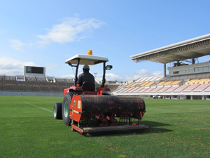 実は芝生を刈る際の機械の向きで芝生の色が変わるんです(^_^)/