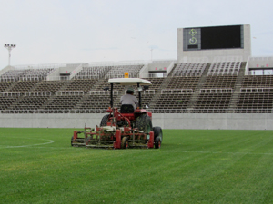 実は芝生を刈る際の機械の向きで芝生の色が変わるんです(^_^)/